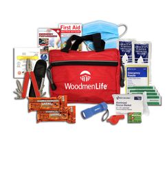 The best way to handle a sudden emergency or disaster is to be prepared and stay that way. This disaster kit is a great start, as it's full of quality survival essentials. Inside the sturdy case, you'll find an LED flashlight with batteries, heat-reflective blanket, emergency drinking, first aid supplies, All-in-One Emergency Guide, and more. Customize with your brand name, logo, or custom message, printable in up to three spot colors. (Ready4Kits product #1440-6003)