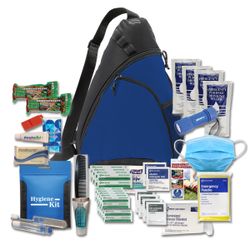 Lifegear Sling bag featuring 1 high quality Flashlight and a variety of survival items such as emergency food and water (5 year shelf life) , emergency blanket, poncho, hygiene kit, first aid kit and a disaster guide. We Intentionally chose a bag that is large enough to accommodate the most important items, but small enough to fit in a desk drawer or under a vehicle seat.
